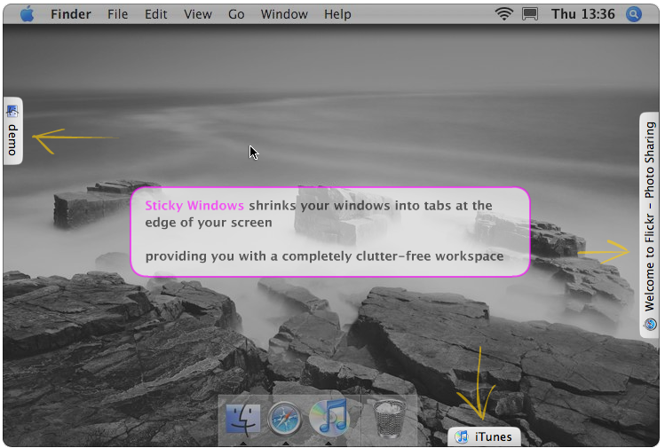 Sticky Windows ($19.95) is another desktop de-cluttering application that I used nearly everyday, but it too is being updated for Snow Leopard. Sticky Windows allows you to park any open windows to the edge of your desktop screen. It’s almost like minimizing applications, but it turns any opened window into a tab that can be parked anywhere on the edge of your screen. I used this program mainly for opened browser windows that I would access throughout the day. The process also has an automated option for parking selected windows when they're not in the forefront window.