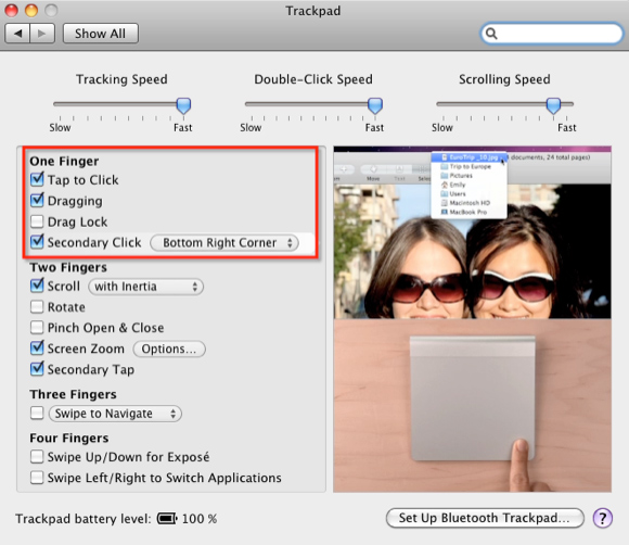 Despite these limitations, because I configured my Trackpad to use one-finger tap and dragging, tapping on a file and dragging it across two monitors or from one part of the Finder to other seems smoother and faster. Scrolling up and down web pages feels better using the Magic Trackpad, and activating Exposé and the Application Switcher also seems faster, partly because I‘ve never liked using the keyboard shortcuts to access these features.